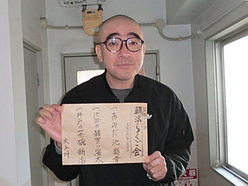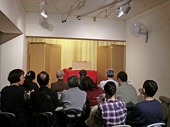 休憩後は落語「ふろしき」で大爆笑。 ![]() ![]() 12日(日)、「集い処ATIUS」「初寄席」が開かれ、露の新治が出演しました。この集い処は、吹田のSさんが自宅の一部を改造し、ミニコンサート等を開催出来る防音付のスペースを誂えたのです。これまでライブは開催してきたそうですが、家主のSさんに拠れば「寄席の初回は露の新治にしたかった」との事でした。 当日は会場満杯の20数名が座り、14:00の開演を待ちました。新治さんの話は立ったままのお馴染み「お笑い人権噺」→休憩→「夜間中学との出会い・その取組み+狭山事件とは・その取組み」で実に16:30まで! もう一度休憩を挟み、着替えてから高座に座し、小噺は難しいとの枕から、『風呂敷』を噺しました。満場の人が「笑い→真剣→笑い」を堪能する時間を共有出来たと思います。その後、ほとんどの人が交流会に残り、新治さんを囲んで色々な話題で盛り上がりました。