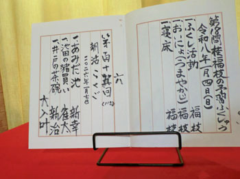 昨日、浜田市に行ってきました。ホームページにはずっと載ってなかったので迷いましたが、メールさせて頂きました。今年はずっと体調崩して、11ヶ月ぶりに師匠に会えました。面白い噺で、大笑いして帰りました。「相撲風景」と言う噺です。やっぱり、師匠の落語は違います。また、師匠の落語に引き込まれて帰ってきました。来年も行きます。
