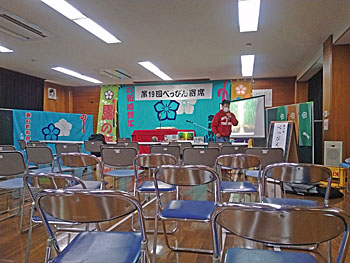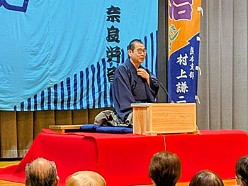 「兵庫県宍粟市 城下ふれあいセンター。」 二度目のお笑い人権高座。「今回は落語を!」をということで、立派な高座を作って戴きました。まず前回の話に続けて、「お笑い人権噺」の後半を話させて戴き、お中入りの後は「中村仲蔵」を申し上げました。終わって声がかかる盛り上がり。以前、毎年新年に伺っていた「ひまわりの家」からも、たくさんの方が駆けつけて下さり、大入りになりました。ありがたく、精一杯務めさせて戴きました。