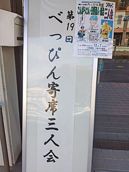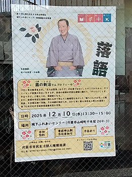 「明智寄席が岐阜新聞に。」 (2025.12.5) 11月24日の「第二回明智寄席」(岐阜県可児市)の記事が岐阜新聞に載りました! ありがたや。 ![]() 「第19回べっぴん寄席。」 (2025.12.7) 島根県浜田市にて、べっぴんの会主催の人権啓発イベント「べっぴん寄席」(江嶋修作先生名づけ)。番組は、「前説」・新治、「人権講座」・日野先生、(お中入り)、「コメディマジック」・こんばらさん、「相撲風景」・新治。朝5:20出発、深夜0:12帰宅というハードな行程。といっても、新治は助手席に座ったまま。往復12時間の運転と大熱演のこんばらさん師匠のお力のおかげで、ええお笑い人権寄席ができました。来年はいよいよ20回。願生ります。