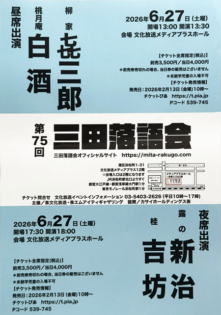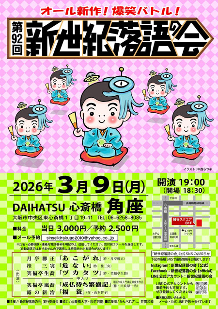 | 繁昌亭昼席 ・ 喜楽館昼席の入場券はチケットぴあで購入できます(手数料がかかります)。なお、新治さんが出演される会に限り、メールでも受け付けます。上記アドレスまでお問い合わせください。 | |||||