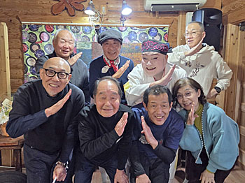 今年の歌い納め旅は福岡で、早やお陰様で無事盛況に終わりました。千秋楽は12月7日(日)に田川の「LOGカフェSARA」で、川崎亭蝶朝さん、蝶朝婦人主催の元、オープニングは蝶朝さんが弾き語り漫談「ちょーちょー吉田さん」として。そして何と助っ人メンバーとして、ビートルマニアで有名な田川が生んだビートルズ、カーネギーホール公演実現された伝説のフライングエレファンツのドラマー、田川のリンゴスターことエレファンツ手島さんがカホーンで参加されました。私もアンコールで「R&R Music」「The Sunny Side Of The Street」、カホーンで花を添えて頂き、最高のステージ立たせて頂きました。