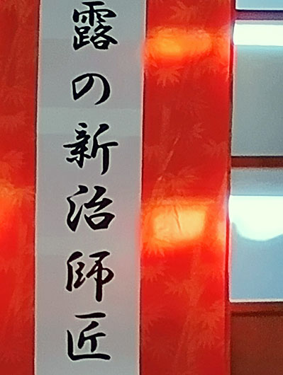 早速、新治師匠お出番のハルカス寄席に行ってきました! 「紙入れ」・・・もぅ新治師匠の演じる女性が艶っぽくって魅力的です。女性からでもあこがれます。あんな風に男性をもて遊んでみたい(^^) 何十年、女やらせてもらっていますが、師匠の演じる女性には及ばず××× 今年はますます新治師匠の色々な演目を聞いてみたいと思っております。終演後は出口まで出てきて下さり、お写真撮影大会になっておりました。私は恐れ多く見ているだけでしたが・・・。【2026.1.8 KM様】(ハルカス寄席の感想をお寄せいただきました。落語にハマりだしてもぅすぐ三年目だそうです。新治さんのお見送りには、気軽にお声掛けください。MORI) 1月12日、師匠の落語聞いて来ました。「紙入れ」と「井戸の茶碗」聞かせて頂きました。広島県尾道市百島町という離島にある、西林寺(さいりんじ)と言うお寺で、師匠の落語の前に曹洞宗の法要「大般若会」があり、凄かったです。私は檀家ではないので断られるかと思いましたが、ご住職が参加を許可して下さいました。有難い法要でした。師匠は行きの船の中で主人とずっと喋ってました^^; 横でハラハラしながら聞いてました。楽しい時間でした。