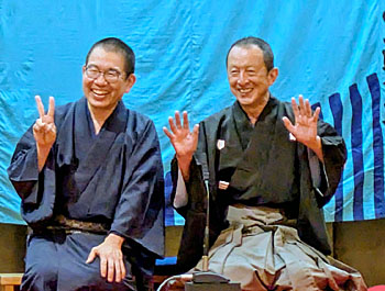 「桂文福のたぬき小屋から福もろ亭~その316~。」 (2025.10.28) 我らが文福師匠のユーチューブ、「桂文福のたぬき小屋から福もろ亭~その316~」で、24日の「三代目露の五郎襲名披露興行」の模様を語って戴いてます。ぜひご覧下さいませ! ![]() 「眞さん、上がりました!」 (2025.10.30) お稽古熱心な眞さん。前回注文を出した部分をしっかり仕上げて来はりました。一発で上がりました。11月24日(月・祝)繁昌亭夜席 「露の眞独演会」にて披露の予定! 上方女性噺家では初のチャレンジ。きっとうまくいくと思います。ぜひ、お聞きください。お楽しみに! ![]() 「狭山事件の再審を求める市民集会。」 (2025.10.31) 10月31日(金)、東京の芝公園での「狭山事件の再審を求める市民集会」に参加しました。 1974年。51年前のこの日狭山事件の高裁判決(寺尾判決)が出ました。部落差別について、自分の意識を問うこともなかった私が、初めて「差別意識持ってる」と気づくきっかけになった判決です。世間知らずの私でも、新聞の判決骨子を読み納得できませんでした。そこから考え、いろんな人に教えて貰い、自分の中にある差別意識に徐々に気づかして貰いました。おかげで遅まきながら、自分と向き合えました。ええ加減ながらも「人権感覚」というものに触れたのです。おかげでなんとかこの歳まで生きて来れました。その間、「狭山」はずっと私の頭にありました。もちろんこんなに長引くとはおもてませんでした。明々白々、すぐに再審が開かれ、無罪になるとおもてました。検察、裁判所の引き延ばしで、未だに石川さんの見えない手錠は外れてません。 今年3月、石川一雄さんは残念ながら亡くなられました。生きて汚名を雪ぐことができなかったのです。石川さんは一回り上の兎年で、枝雀師匠と同年。いっぱい影響を受けた、このお二人がもおおられないと思うと、ほんまにさびしいです。普段、狭山事件のことを忘れがちの私は、5月23日の狭山デーと10月31日のこの日は、なるべく集会に参加してきました。今年は奧さんの石川早智子さんに会うために行きました。早智子さんは、かなり痩せられ、笑顔も元気も、今までとは違いました。当たり前です。「石川命、我が命」と石川さんと共に生きてきはったんですから。けれど全国から駆けつけた多くの闘う仲間とふれあい、登壇した早智子さんは、力強く「石川一雄さんの無実、第四次再審請求への支援」を訴えられました。万年筆のインク、筆跡など、誰が見ても無実の証拠は多くあります。それを専門家の鑑定として出してるんですから、再審は開かれて当然です。来年3月、現裁判長の定年前に、光明が見られますよう、やれることをやらして戴きたいとおもてます。願いに生きる!願生る!