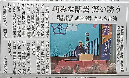 11月24日(月・休)は、岐阜県可児(かに)市河合地区センターにて、明智寄席第2回特別公演「落語と講談の会」。