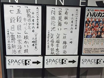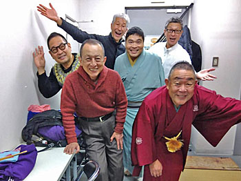 「ハルカス(笑かす)寄席。」 (2025.12.16) 12月16日(火)は。あべのハルカスにて、ハルカス(笑かす)寄席。大入り! 第二部は、提案して忠臣蔵特集になりました。私は七段目の心づもりをしてましたか、かい枝、染左のお二人には、今風にいう「無茶ぶり」。それでも、即対応してくれる二人の力量。おかげで時節にふさわしい番組になりました。季節感が薄れ気味の今、「せめて寄席ぐらい、季節感を味わいたい」というお客さまの声に応えることができました。緊張感と盛り上がり。ハルカス寄席はワクワクする寄席です。楽屋も高座も大盛り上がり!(楽屋風景の撮影は、林家勘左さん)。