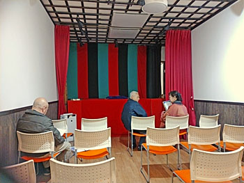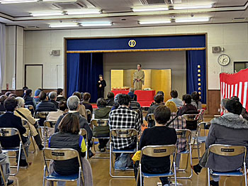 「兵庫県宍粟市 城下ふれあいセンター。」 二度目のお笑い人権高座。「今回は落語を!」をということで、立派な高座を作って戴きました。まず前回の話に続けて、「お笑い人権噺」の後半を話させて戴き、お中入りの後は「中村仲蔵」を申し上げました。終わって声がかかる盛り上がり。以前、毎年新年に伺っていた「ひまわりの家」からも、たくさんの方が駆けつけて下さり、大入りになりました。ありがたく、精一杯務めさせて戴きました。