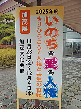 「新潟県加茂市、2025年度「いのち・愛・人権」加茂展。」 (2025.11.28) 新潟県下を巡回して、年に一回開催。今年は中越地方の加茂市で。県知事や市長が挨拶をされる公の催し。そのパネル展で、狭山事件のパネルがいっぱい展示され、更には金監督の石川さんのビデオがエンドレスで上映、おまけに、参加者全員に「月刊狭山差別裁判(狭山パンフ)」が資料として配布されるという充実ぶり。画期的なパネル展でした。狭山事件はただの冤罪事件ではなく、石川一雄さんがでっち上げられた背景には「部落差別意識」が深く働いています。刑事事件としては石川一雄さんは無関係。差別事件としては被害者。なのでこれは明らかな人権問題です。 私自身、狭山事件の高裁判決で、自分の差別意識に気づかして戴いたので、人権意識の原点です。狭山事件とのは出会いなくして、お笑い人権高座はありません。お話のな中でも触れさせて戴きました。700の会場の半分は、地元の中学生。よく反応し、聞いてくれました。手応え十分のお笑い人権高座となりました。