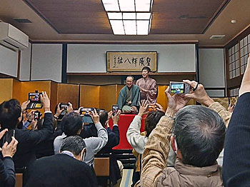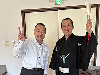 「熊本よかちょろ会寄席。」 (2025.10.25) 第45回熊本熊本よかちょろ会寄席 新治独演会。ありがたく勤めさして戴きました。落語をちゃんと聞いて下さる子供さんも何人か来られていてありがたいことでした。 ![]() 「浄玄寺チャリティー寄席。」 (2025.10.26) 10月26日(日)、熊本市の浄玄寺様(真宗大谷派・東本願寺)にて、チャリティー寄席。「本年8月11日に熊本県内で豪雨災害が発生しまして、寺で開いている子ども食堂の県内関係団体が支援活動を行っております。その一環としてのチャリティー寄席です。」(吉尾住職談) 番組は、「お笑い人権高座」・新治、(お仲入り)、「時うどん」・新幸、「ふろしき」・新治、「ギター漫談」・新幸。満堂御礼。