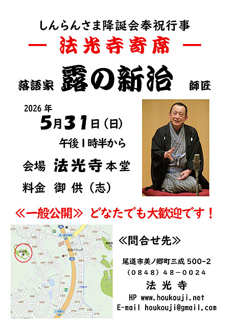 新治さんが出演する落語会、「新ちゃんのお笑い人権高座」等のチラシを、ドシドシ掲載していきます。デジカメ、携帯等で写されたデータを送ってください。チラシそのものを送っていただいても結構です。(下にいくほど日時の古い催し物になります) 【2024年以前のチラシはこちらからどうぞ】